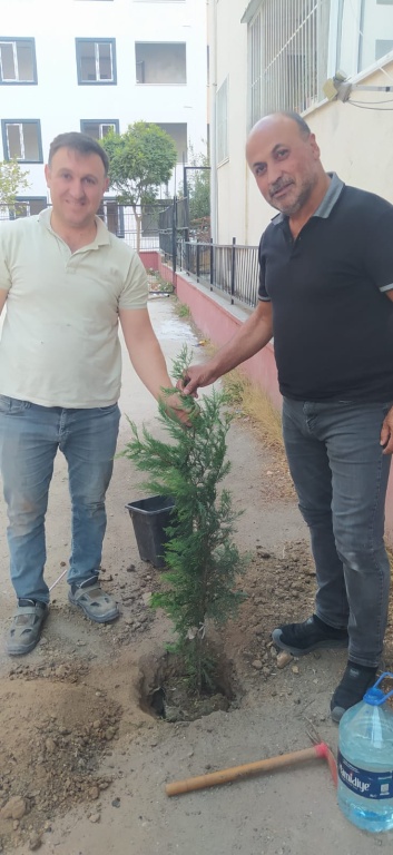 Gelecek nesillere yeşil bir dünya bırakmak için okul olarak okul bahçesine ağaç diktik.